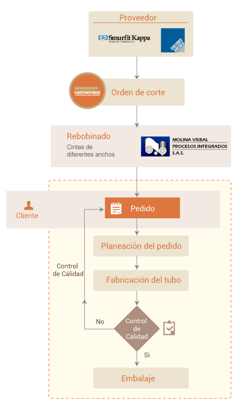 1. El cartón llega a la planta en rollos, los cuales son rebobinados en Molina Visbal Procesos Integrados SAS para obtener las cintas.