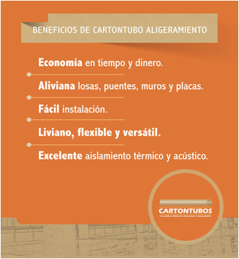 Cuando son utilizados para aligeramiento, la función principal de los tubos de cartón es la de conformar espacios vacíos que alivianan el peso de una extensa gama de construcciones como losas para edificaciones, placas para puentes, muros, etc.