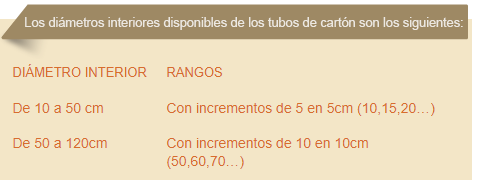 El largo estándar de los tubos de cartón es de tres metros, conveniente para su fácil manejo en obra y adecuado para la medida más usual de altura de columnas pudiéndose ensamblar consecutivamente para lograr mayores longitudes.